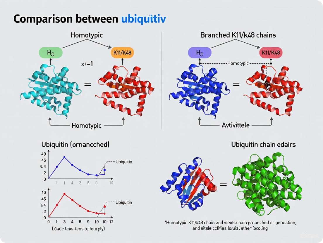 This side-by-side analysis clarifies why simply having K11 linkages does not guarantee proteasomal targeting—the context of those linkages within the broader chain architecture is determinative. The specialized recognition of branched chains enables cells to fast-track critical regulatory proteins for degradation under specific physiological conditions, adding a layer of sophistication to the ubiquitin-proteasome system that continues to be elucidated through structural and biochemical studies.