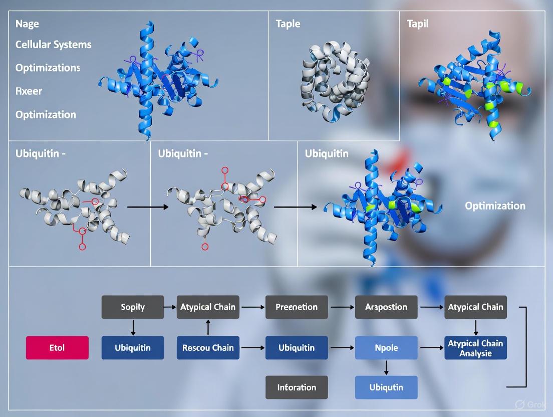 The optimization of cellular systems for atypical ubiquitin chain analysis represents a frontier in understanding complex post-translational regulatory networks. By integrating foundational knowledge with refined methodological approaches, robust troubleshooting protocols, and comprehensive validation strategies, researchers can overcome historical challenges in characterizing these elusive modifications. Future directions will likely involve increased automation through computational frameworks, the development of more specific reagents, and the application of these optimized systems to identify novel therapeutic targets in cancers, neurodegenerative diseases, and metabolic disorders where atypical ubiquitination plays crucial but under-explored roles. The continued refinement of these analytical pipelines will undoubtedly unlock new dimensions of ubiquitin signaling biology with significant implications for biomedical research and drug development.